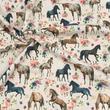 Schöner beigefarbener Alpenfleece mit tollem Pferdemotiv und kuscheliger Innenseite. Der Alpenfleece eignet sich ideal für Bekleidung wie Pullis und Hoodies,